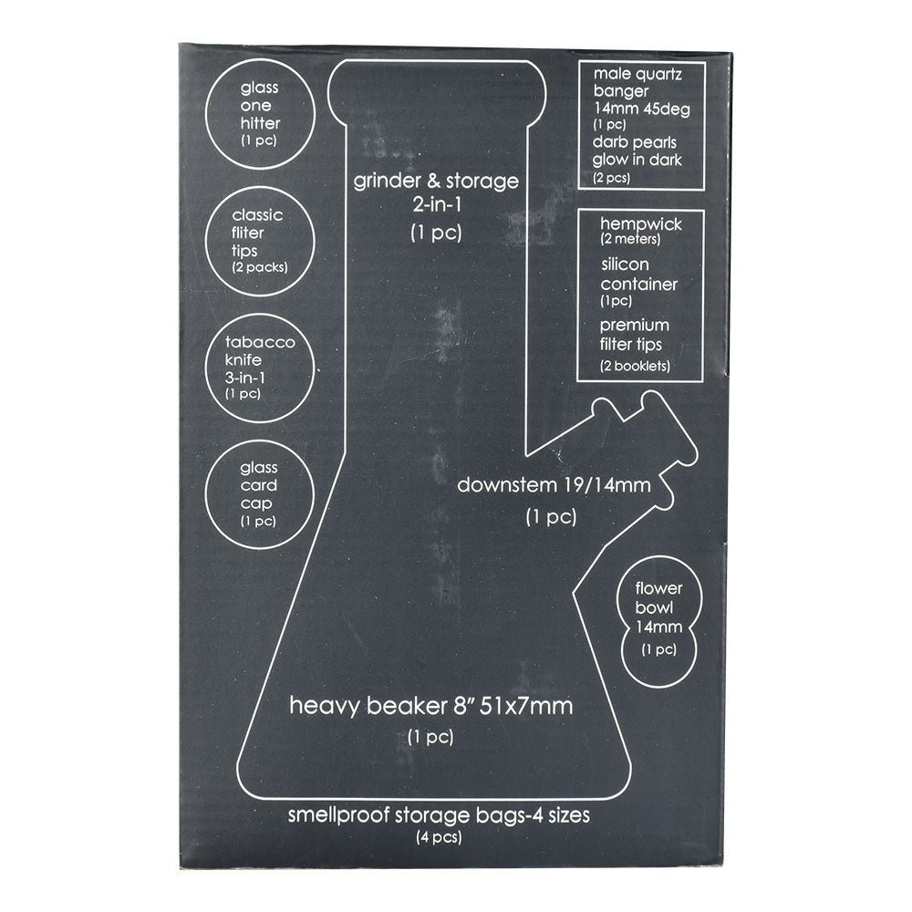 - Smoking Accessories: Complete kit with a glass chillum, hemp wick, pipe tool, and grinder/stash jar combo.